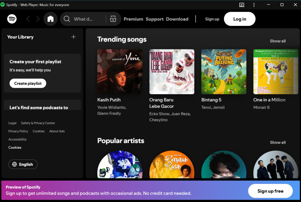 Contoh PWA lainnya dapat dilihat pada aplikasi Spotify. Mereka menyediakan versi PWA bagi pengguna desktop, sehingga pengguna bisa mendengar musik langsung dari browser tanpa harus mengunduh aplikasinya dari app store.